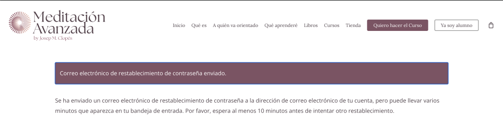 Este problema ocurre porque no has iniciado sesión con tu cuenta antes de realizar el pedido, por lo que si estás usando por ejemplo el mismo email con el que compraste el Curso de Meditación Avanzada, el sistema detecta que esa cuenta ya existe y no puede crearla de nuevo.
